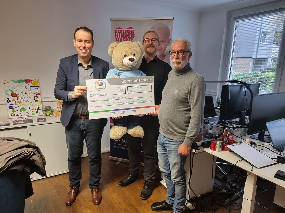 Thomas Bura, Bernd Schulte und Hans-Dieter Derenthal vom Vorstand der GWG Dortmund eG haben in diesen Tagen einen regelrechten Spendenmarathon absolviert.